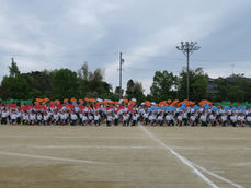 「曇りのち雨」という予報で天候の悪化が危惧されるため、降り出す前に児童が毎日練習してきた成果をより多くの保護者の方に参観していただけるようにと、まず演技種目を行い、その後徒競走・リレー、最後に学区種目とプログラムを変更し行われました。